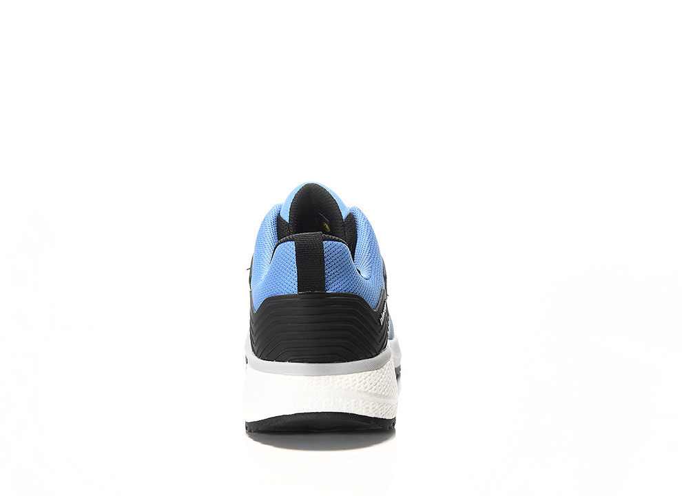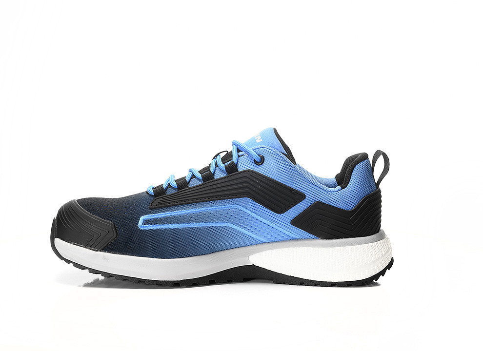 The TORNADO XXSW black-blue Low ESD S1PS from the WELLMAXX SKYWALK series demonstrates that modern design, innovative protective technology, and a high recycled content can perfectly complement each other. The mesh upper, made with recycled components, fits comfortably and is significantly lighter than leather or conventional synthetic fabrics. Inside, a textile lining – also containing recycled materials – ensures excellent air circulation, keeping the foot comfortable even in warm temperatures. The laces and seams are made entirely from recycled materials and offer exceptional durability.